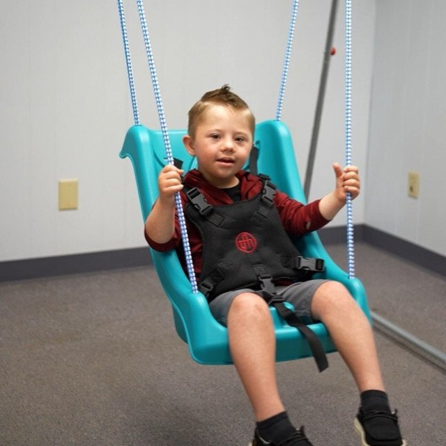 Dispone de cuerdas para ser suspendido, una zona moldeada para impedir deslizamientos y un arnés para un control total del tronco.