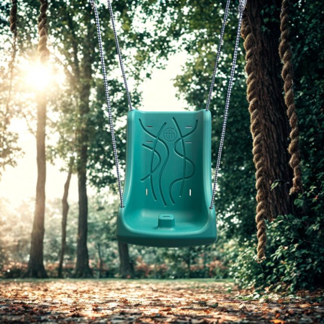Asiento adaptado para columpio (ancho caderas 38 cm) moldeado con polietileno de alta densidad.